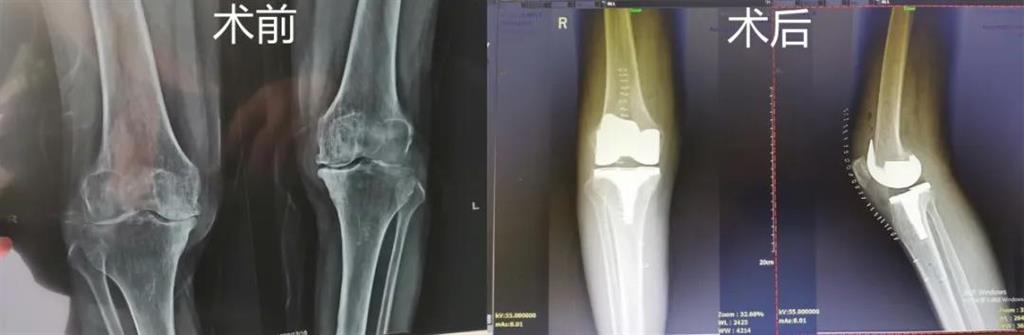 經(jīng)過(guò)進(jìn)一步檢查后,劉丹帶領(lǐng)團(tuán)隊(duì)在計(jì)算機(jī)導(dǎo)航系統(tǒng)的輔助下,為老人實(shí)施了右側(cè)全膝關(guān)節(jié)置換手術(shù)。術(shù)中出血明顯減少,術(shù)后疼痛腫脹等反應(yīng)輕微,畸形矯正力線恢復(fù)理想,而且功能恢復(fù)快速,術(shù)后四天就可以下地行走。