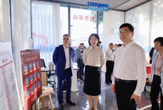 在和平國(guó)際醫(yī)院院長(zhǎng)薛志輝、黨委書記盧瓊的介紹下,何學(xué)考一行先后參觀了醫(yī)院醫(yī)務(wù)社工服務(wù)點(diǎn)、文化墻、黨建長(zhǎng)廊及紅色驛站,詳細(xì)了解醫(yī)院發(fā)展現(xiàn)狀、“兩新黨建”工作成效,并對(duì)醫(yī)務(wù)社工部“五位一體”新模式的開(kāi)展情況重點(diǎn)調(diào)研。作為溫州首家社會(huì)辦醫(yī)機(jī)構(gòu)的醫(yī)務(wù)社工部,和平國(guó)際醫(yī)院醫(yī)務(wù)社工部自今年七月成立以來(lái),積極探索“醫(yī)院+社區(qū)+社工機(jī)構(gòu)+慈善基金組織+志愿者隊(duì)伍”的“五位一體”協(xié)同模式,推進(jìn)“院內(nèi)+院外+社會(huì)”大聯(lián)動(dòng),以專業(yè)社工服務(wù)為醫(yī)療融入人文關(guān)懷,改善患者就醫(yī)體驗(yàn),患者滿意度從80%提升到98%,今年累計(jì)開(kāi)展“紅悅工程”醫(yī)療服務(wù)43場(chǎng)、惠及群眾1935人次。