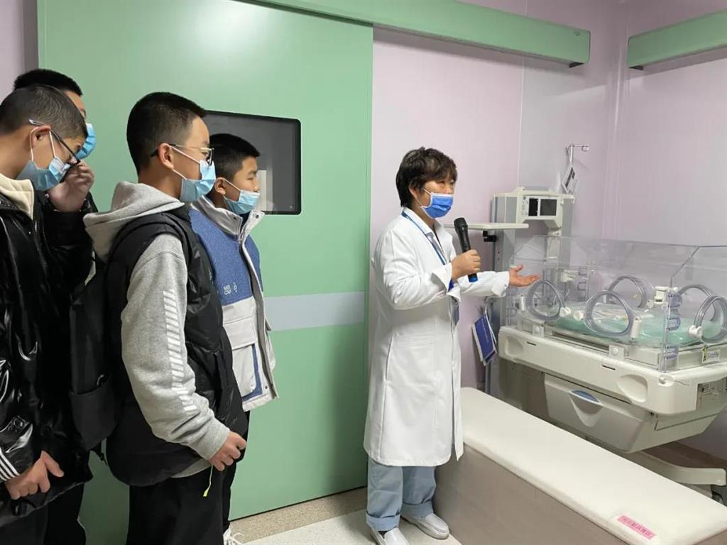 在產(chǎn)前診療中心副主任張金微和助產(chǎn)師張紫香的講解下,大家了解了胎兒的發(fā)育過程,也近距離觀看了包括保暖臺、搶救臺等新生兒輔助儀器。