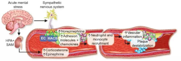 至此,研究人員發(fā)現(xiàn)了生氣誘發(fā)心梗的原因。總的來說,從生氣到心梗就三步: