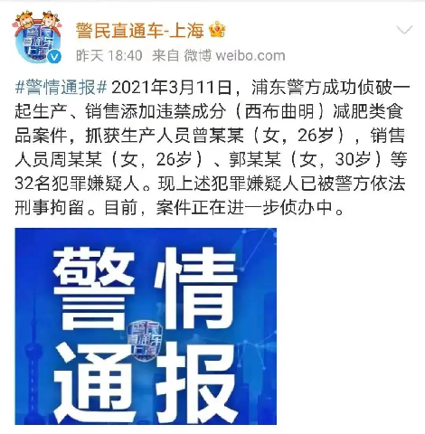 近日,西布曲明上了兩次微博熱搜:一次是警方通報(bào),網(wǎng)紅郭美美因?yàn)殇N(xiāo)售添加違禁成分的減肥類(lèi)食品再次被抓;