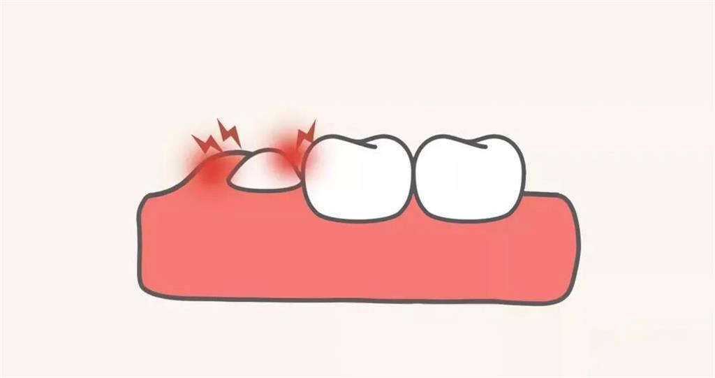 牙齒、牙齦間隙常有食物殘留,不易清潔,易誘發(fā)冠周炎,又腫又痛,嚴(yán)重起來嘴巴都張不開。