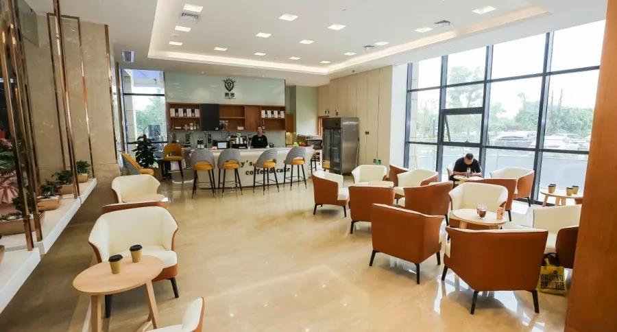 左邊是咖啡吧,品嘗著醇香的咖啡;